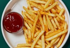200 г • Хрустящий картофель, обжаренный до золотистой корочки, подается с классическим соусом кетчуп. Картофель фри имеет насыщенный вкус и приятно хрустит при укусе