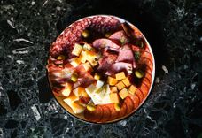 320/60 г • пепперони , колбаса с\к , говядина бастурма , прошутто , сыр бри , сыр чеддер , пармезан , мемо блю , мёд , грисини, микрозелень , хлеб тостовый , орехи миндаль