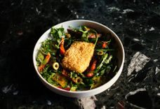 Салат с жареным сыром и печеными овощами